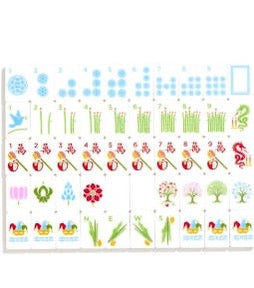 These gorgeous bags are meant to hold everything Mahjong: your tiles, your racks, even your mats. In a set of coordinating blues.Large bag: made of clear pvc with blue pvc interior zipper pocket for Mahjong cards and coins. 22"W x 15"H x 6"D. Handle drop of 9”.Tile bag: zippered bag made of blue gingham cotton with padded interior for protection. 16.7x7”Rack bag: draw string bag made of blue gingham cotton with padded interior for protection. 22x9”