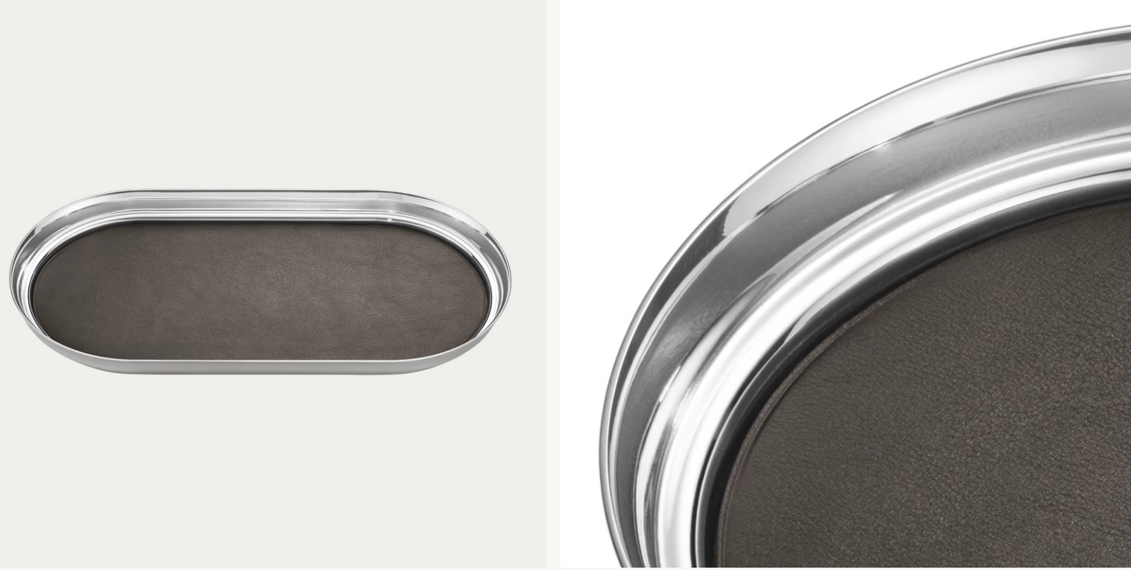 Description: Clean with clothCarefully handcrafted in Portugal by leather artisans, our new collection of leather trays was designed with sophistication in mindAll the pieces are vegetable-tanned, one of the oldest and most environmentally-friendly methods of leather tanning. Dimensions: 12'' x 10.25''