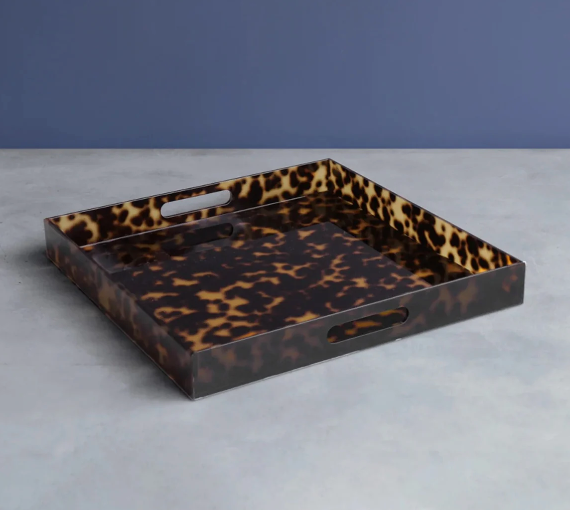 Serve and display all your favorite snacks, cocktails, or coffee table books with this elegant and colorful tray. The clean lines and delicately dispersed color that is accentuated as light passes through makes this tray the perfect piece for elevating your serving game. Handcrafted by gifted artisans using high quality polymer resin from the Philippines, each vessel is designed to catch your eye, stir your curiosity, and create conversation. Dimensions: 17.5" W x 17.5" D x 2" H