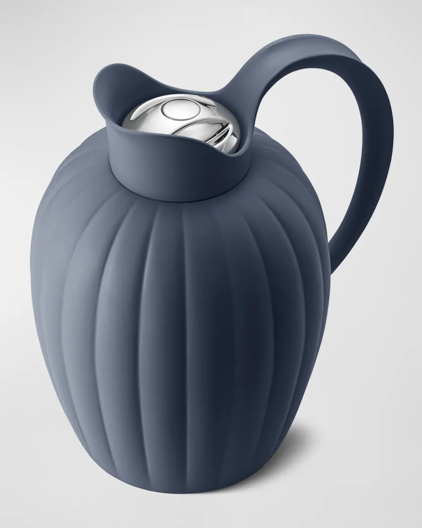 The iconic Bernadotte Thermo jug has been reimagined into this modern version of the classic design. Retaining the signature shape and grooved design, the new jug comes in elegant dusk blue.The piece features a sturdy stainless steel inner lining that will help keep contents warm or chilled for longer. The jug's stainless steel lid comes with a handy button that doesn't require the top to be unscrewed when pouring beverages