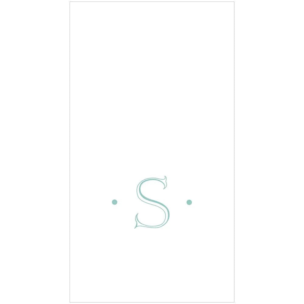 Caspari Antique Initial - Robin's Egg - Paper Linen Boxed Guest Towel 24 Per Box