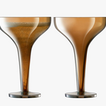 A set of two mouth-blown champagne saucers with hollow stems and disc-shaped feet, inspired by the champagne cocktail era of the 1920s. For champagne and short cocktails.
