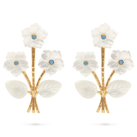Our imagined Mermaid Garden is a collection conjured from a daydream, where Poseidon's many daughters became enchanted by the beautiful flowers they spied on land and recreated their own ethereal blooms out of mother of pearl plucked from the sea. Romantic and elegant, this sweet set of bouquet earrings are perfect for meandering through art galleries in denim and a boho blouse or sipping champagne at a garden party in a cocktail dress - after all, we must never forget to stop and smell the roses!