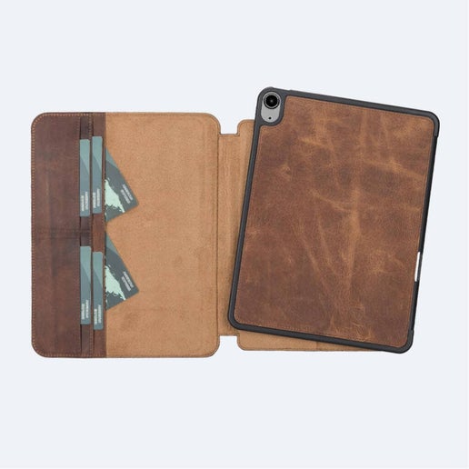 Featuring a snug and secure fit our premium leather iPad Air 10.9 case has been expertly crafted to protect with ultimate shock defense protection. Our detachable leather folio case has been designed to easily snap on and off and includes four functional card slots, a full-length slip pocket, an Apple pen holder, and a stable kickstand to make your busy life easier. *OXA LEATHER - iPad Air 10.9" Leather Folio Case: Black / 5th Gen. (2022 Release)