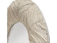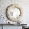 Beveled mirror with metal frame embellished with coconut shell beads hand-sewn in a unique wave design. Mirror includes a metal hanger for mounting.