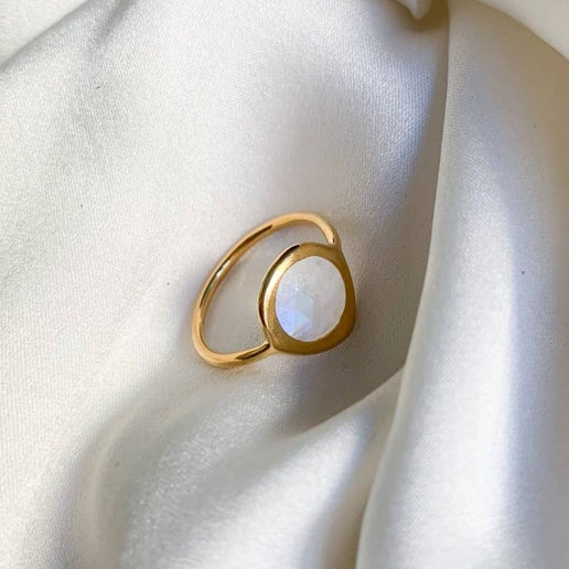 Sophie Deschamps Bijoux - BAGUE MONDAINE, plaqué or topaze & moonstone ( BAGLU31)