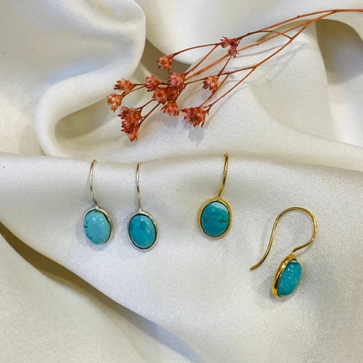Sterling silver sleeper earring, real set turquoise