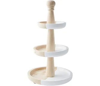 Add our Paulownia wood tiered server to your next baby shower or bridal shower to add a classic serving element. The hand-painted two-tone mango wood server features three tiers for service. The server also features ball feet. This tray also knocks down for easy storage.